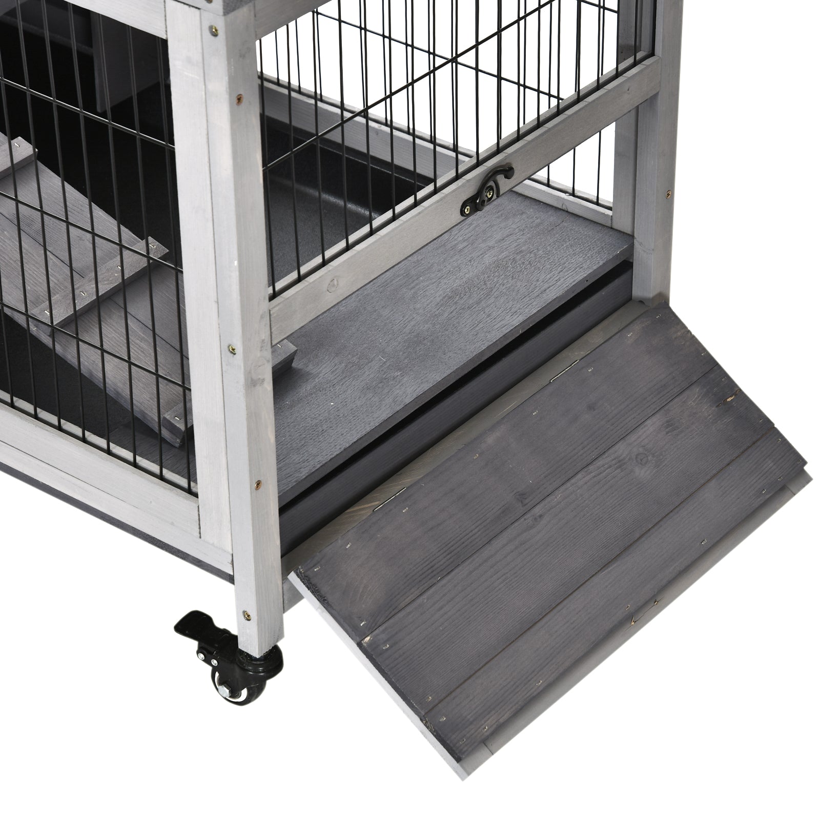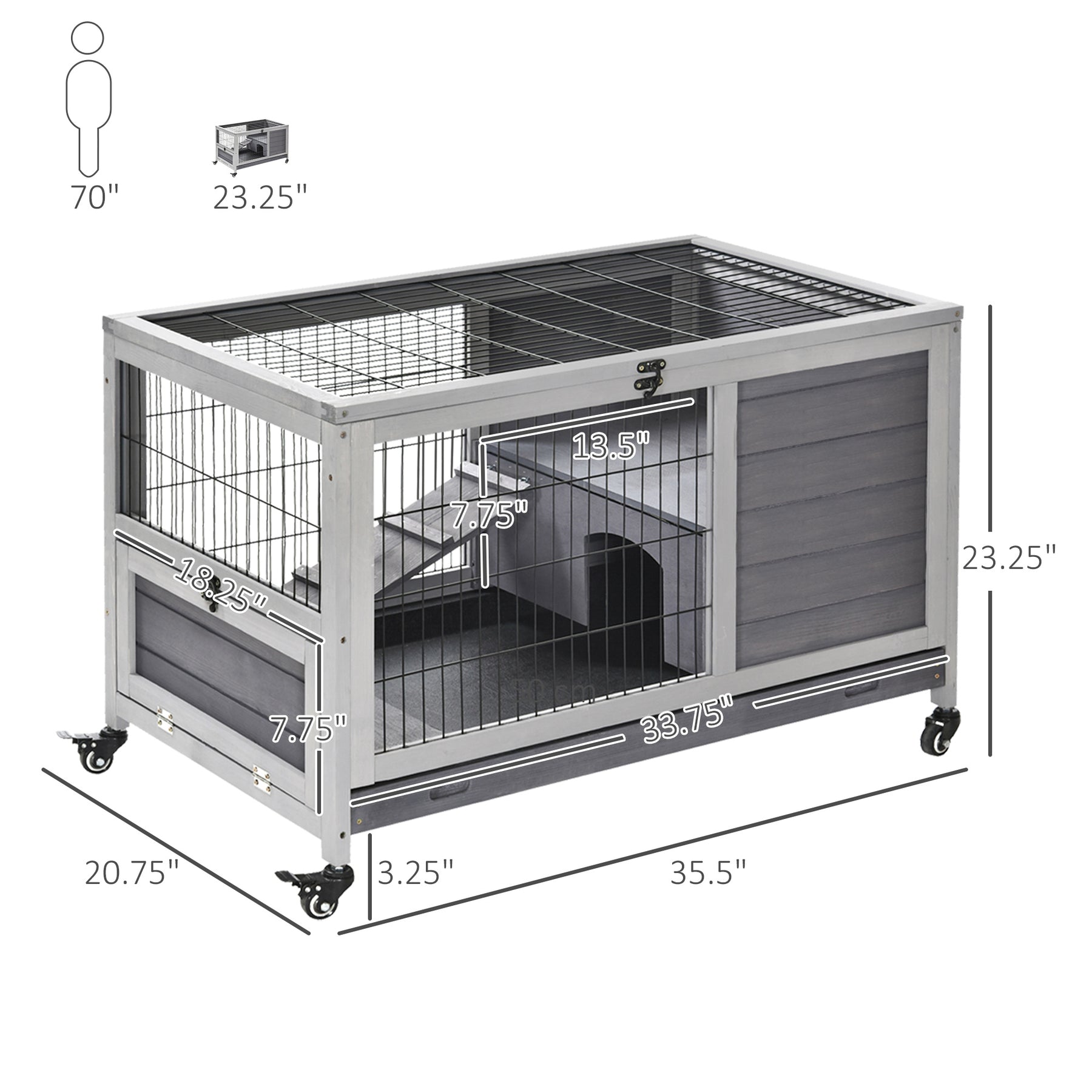 Indoor Rabbit Hutch on Wheels 35.5" Bunny Cage w/ Pull Out Tray Ramp