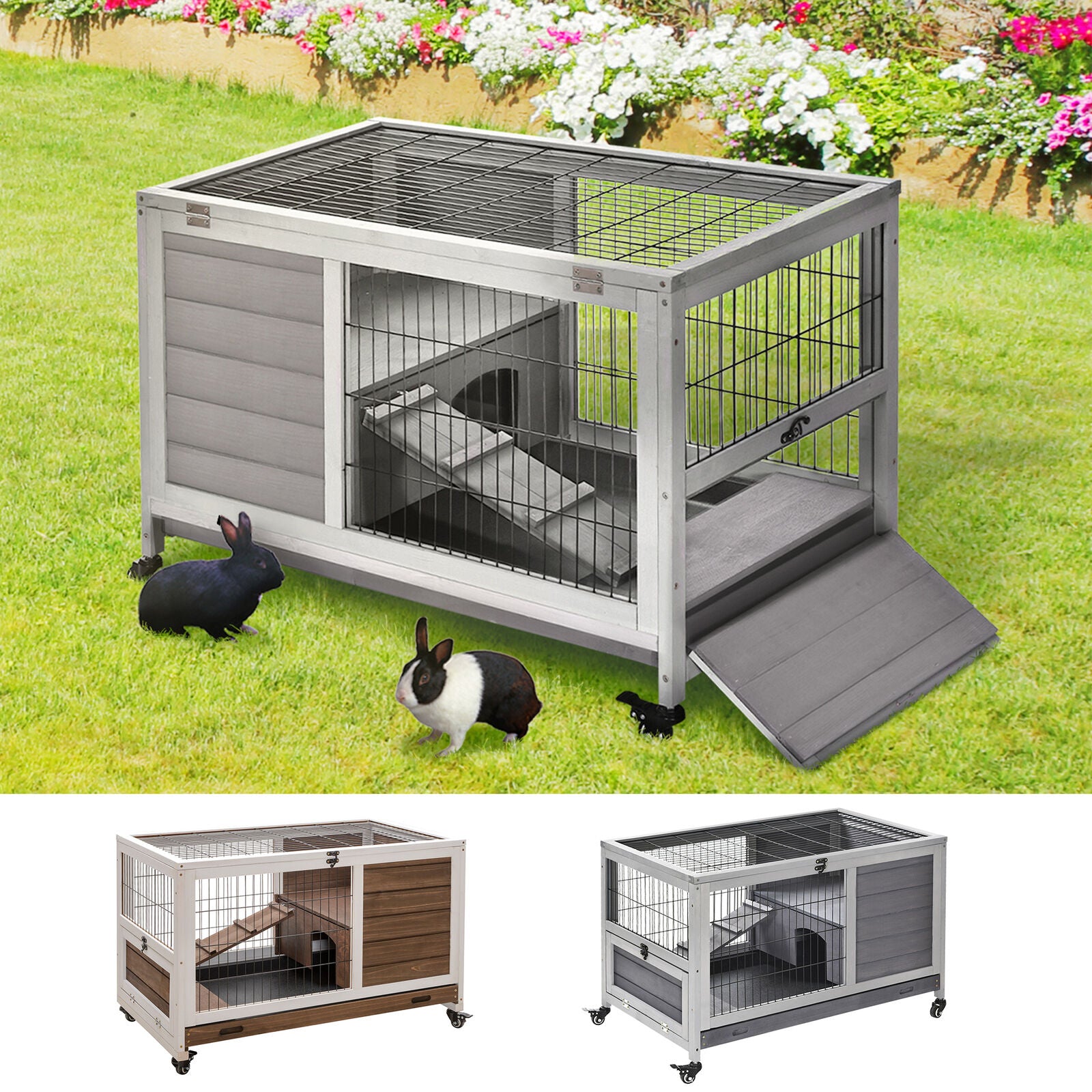Small Rabbit Hutch Indoor, Split House Design, Bunny Cage, Bunny Hutch on Wheels