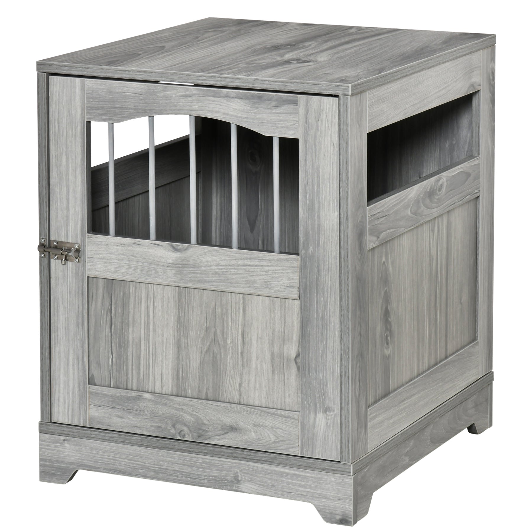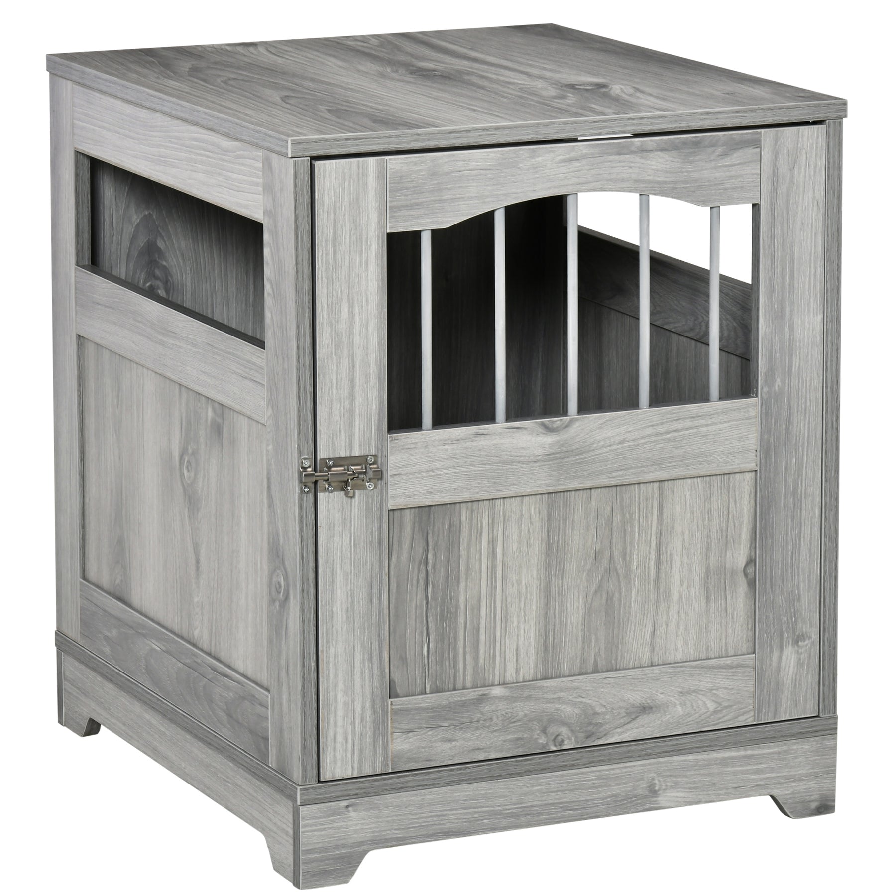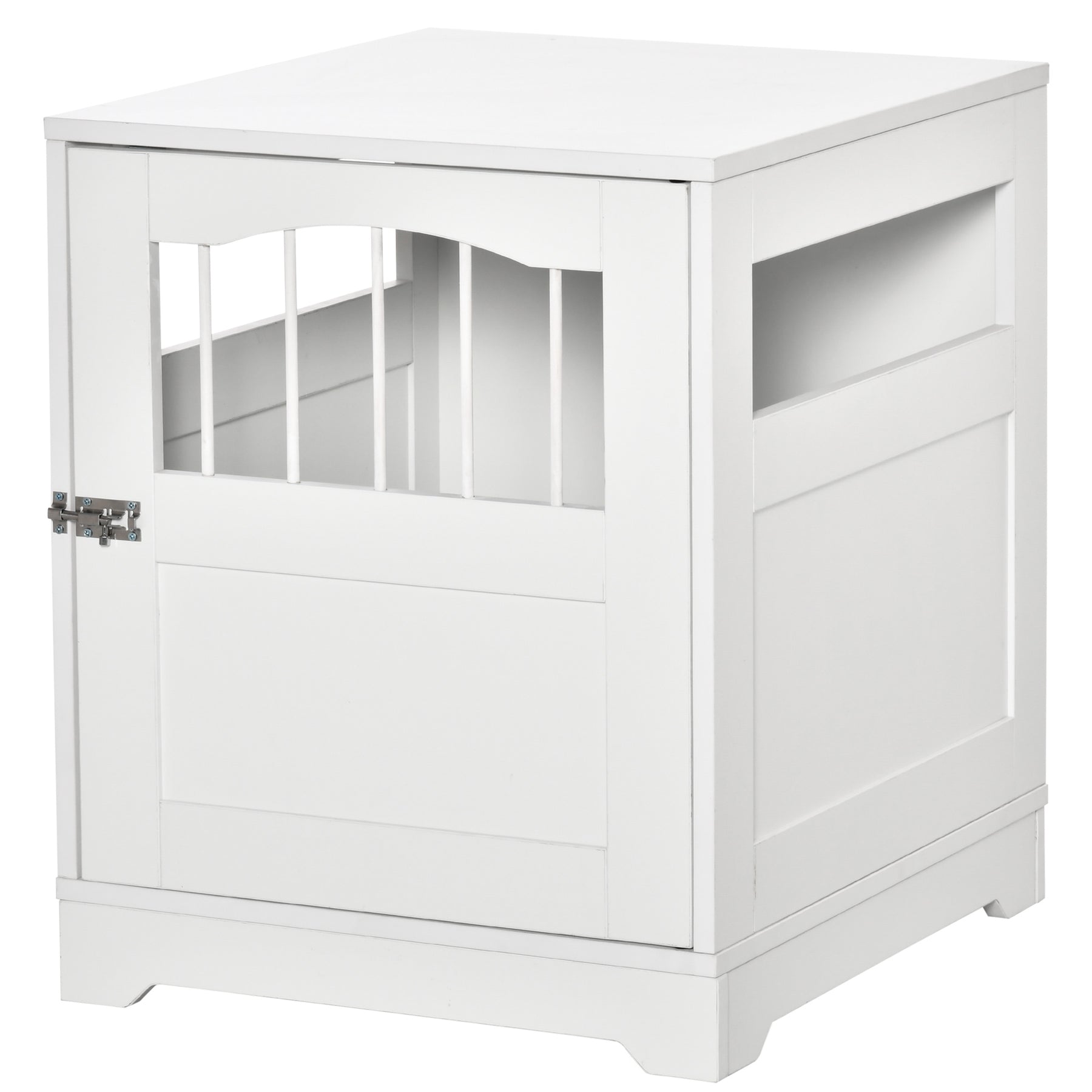 - Make sure your pet is secure while you're away from your home. If you need a crate for your smaller pet, keep this stylishly designed wooden dog kennel from PawHut. Look no further than this decorative dog crate that's secure, stable, and easy to assemble. Impress guests when they visit you and your pet since the dog crate end table will not only keep your pet comfortable and calm while they're over but can also be used to place pet supplies upon the surface. Get your dog their new den.