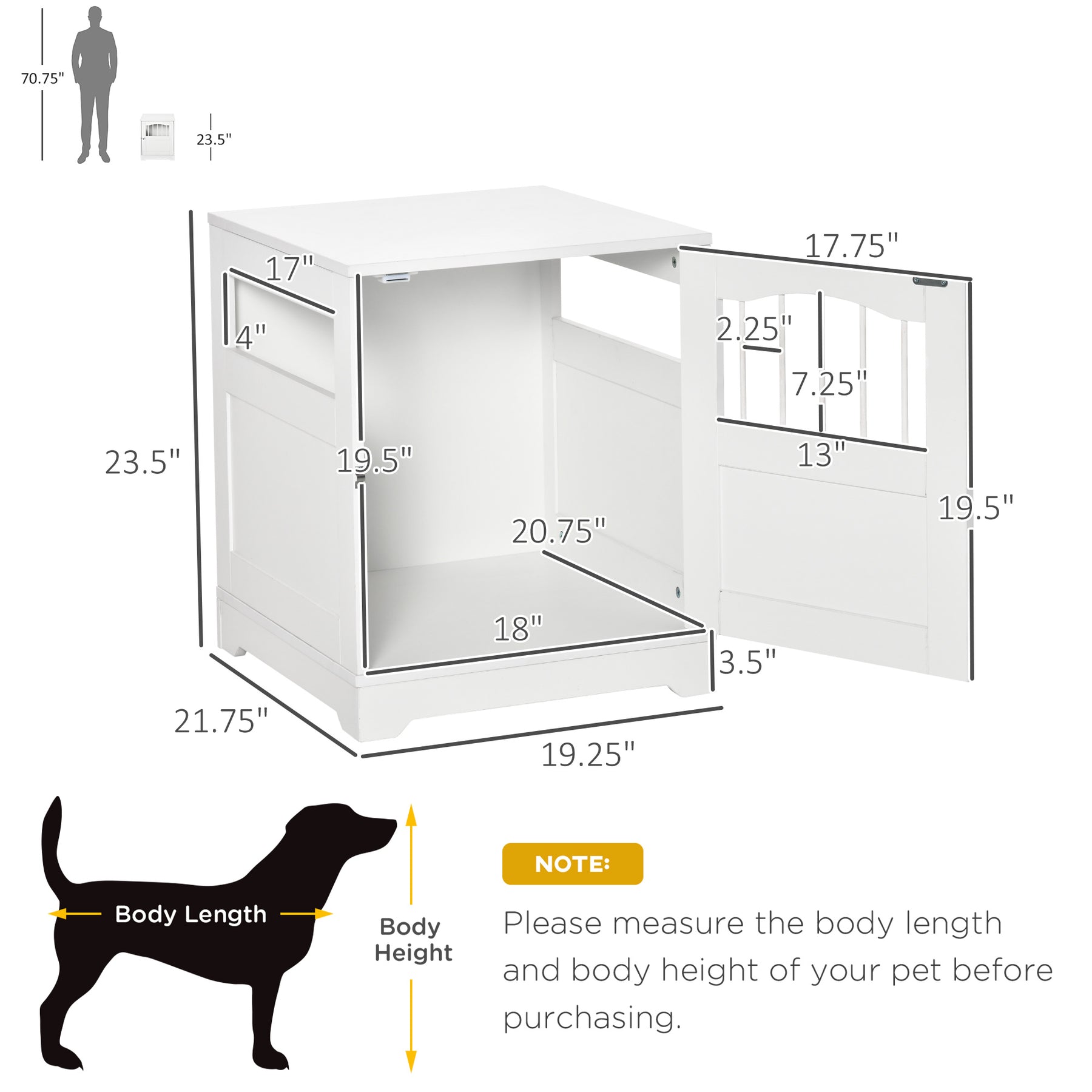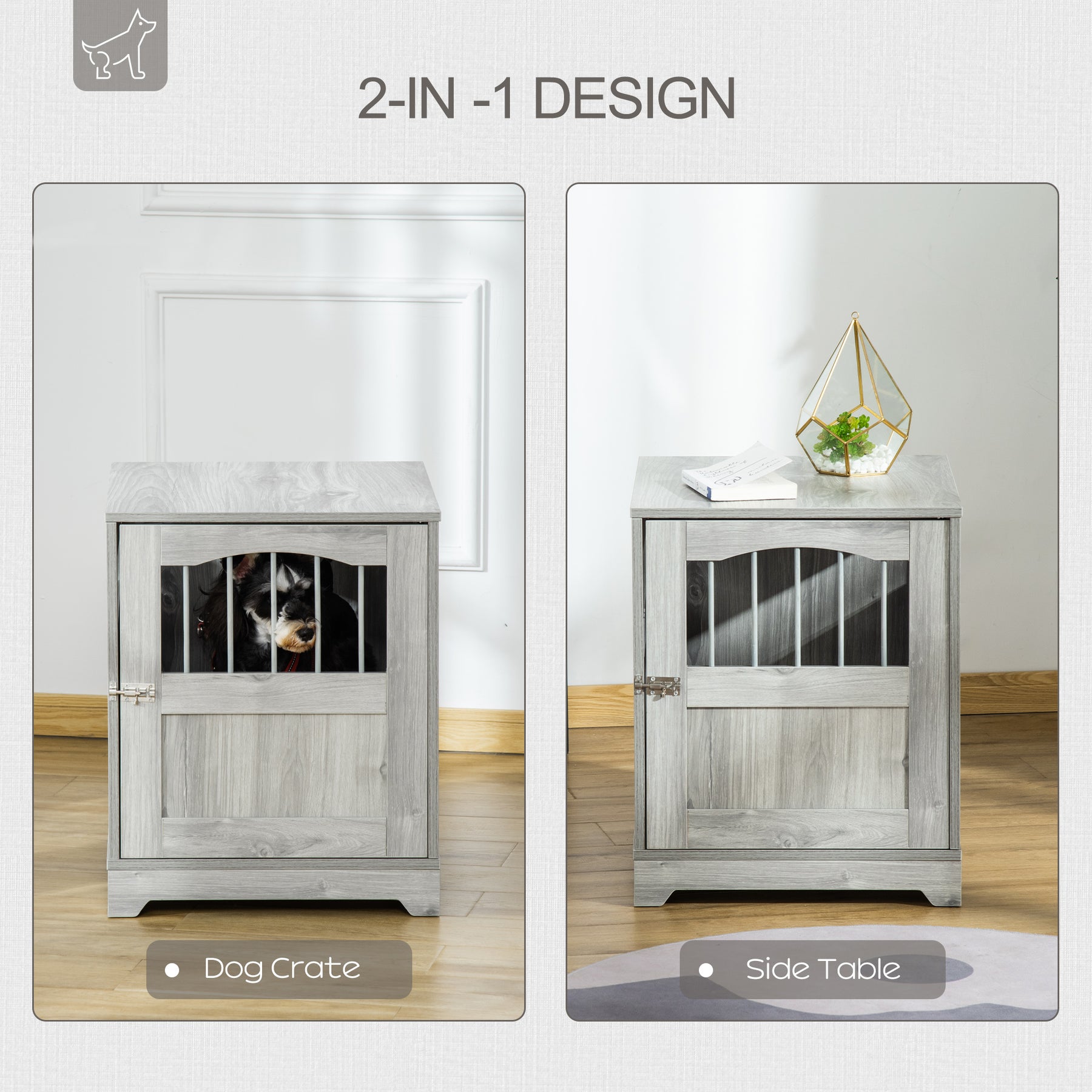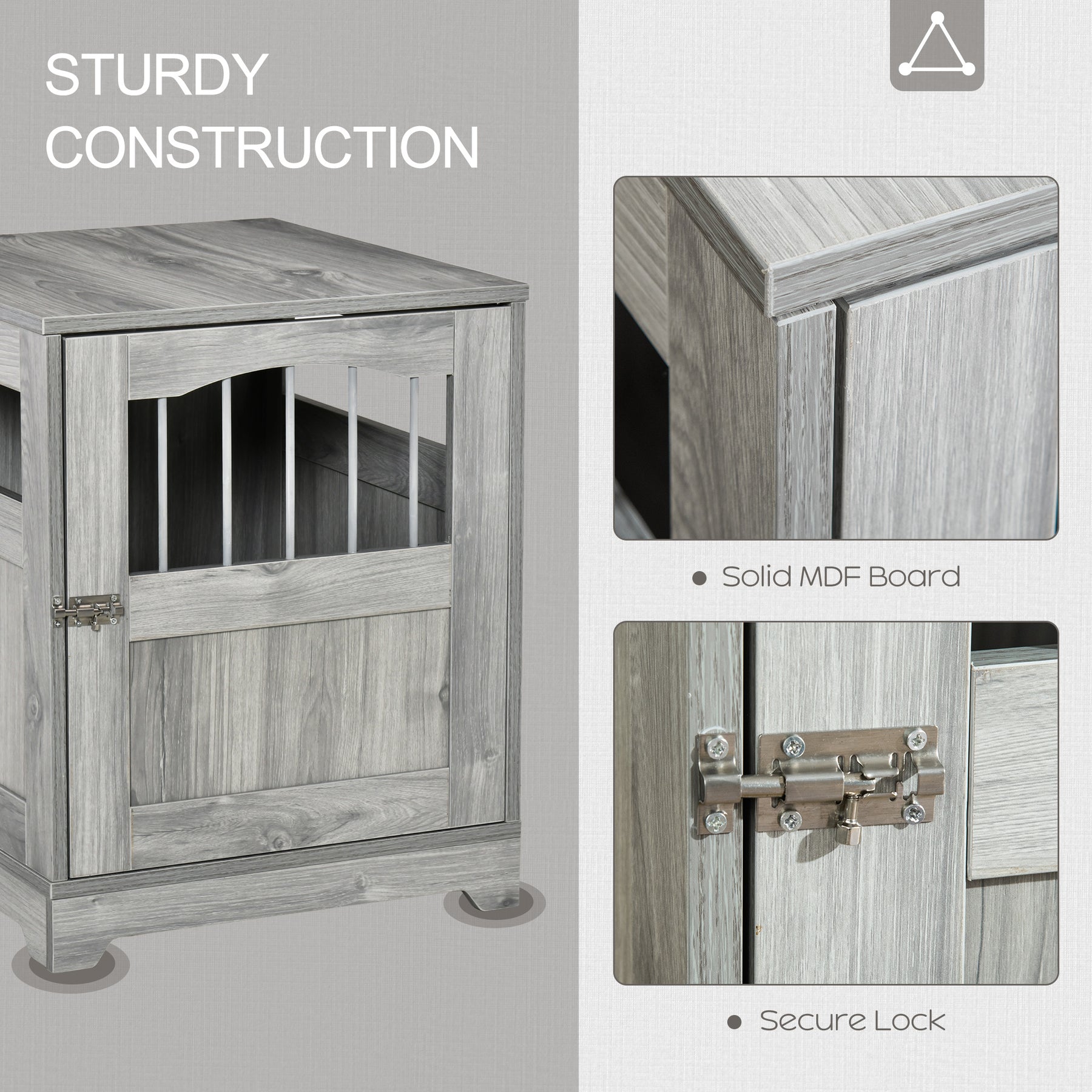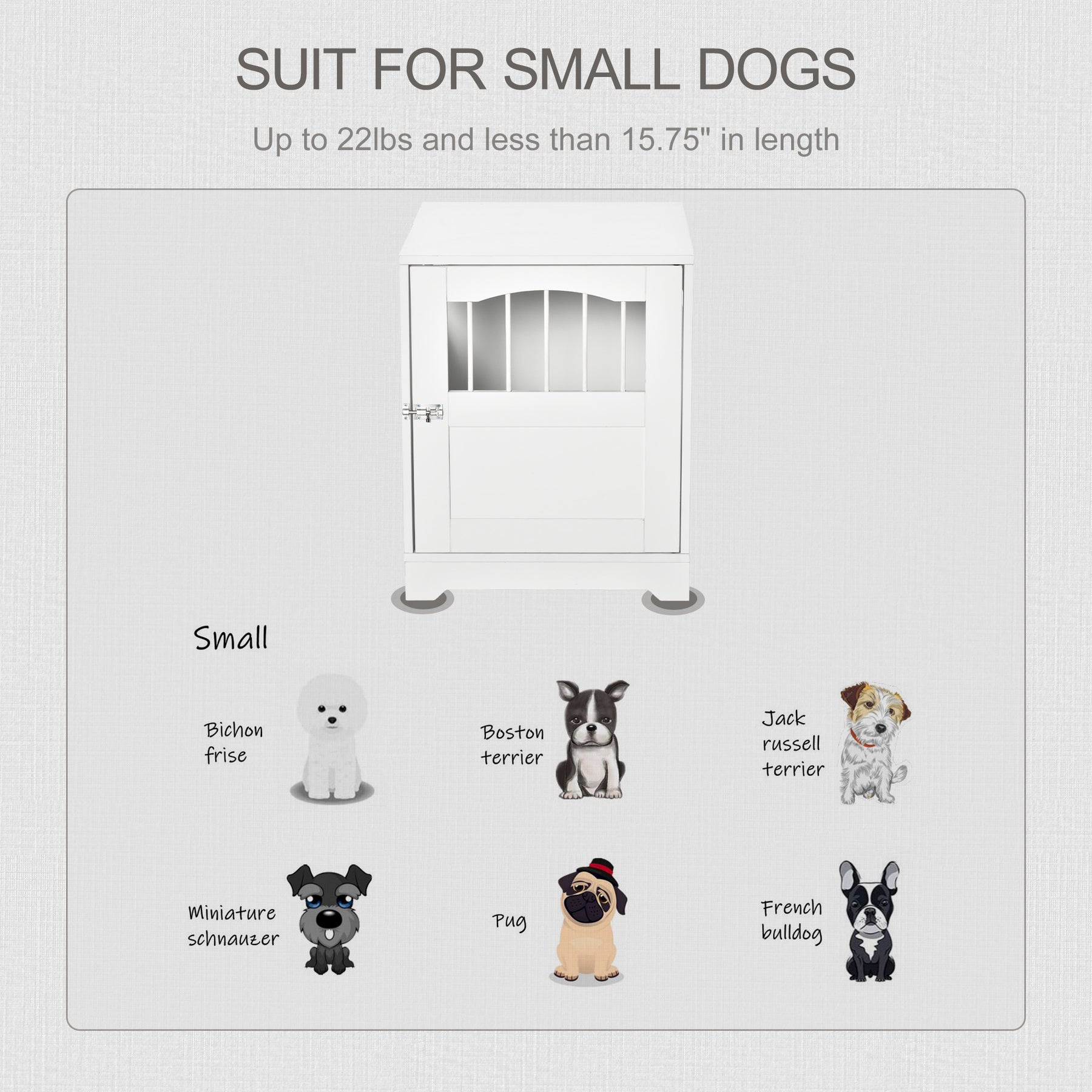 - Make sure your pet is secure while you're away from your home. If you need a crate for your smaller pet, keep this stylishly designed wooden dog kennel from PawHut. Look no further than this decorative dog crate that's secure, stable, and easy to assemble. Impress guests when they visit you and your pet since the dog crate end table will not only keep your pet comfortable and calm while they're over but can also be used to place pet supplies upon the surface. Get your dog their new den.