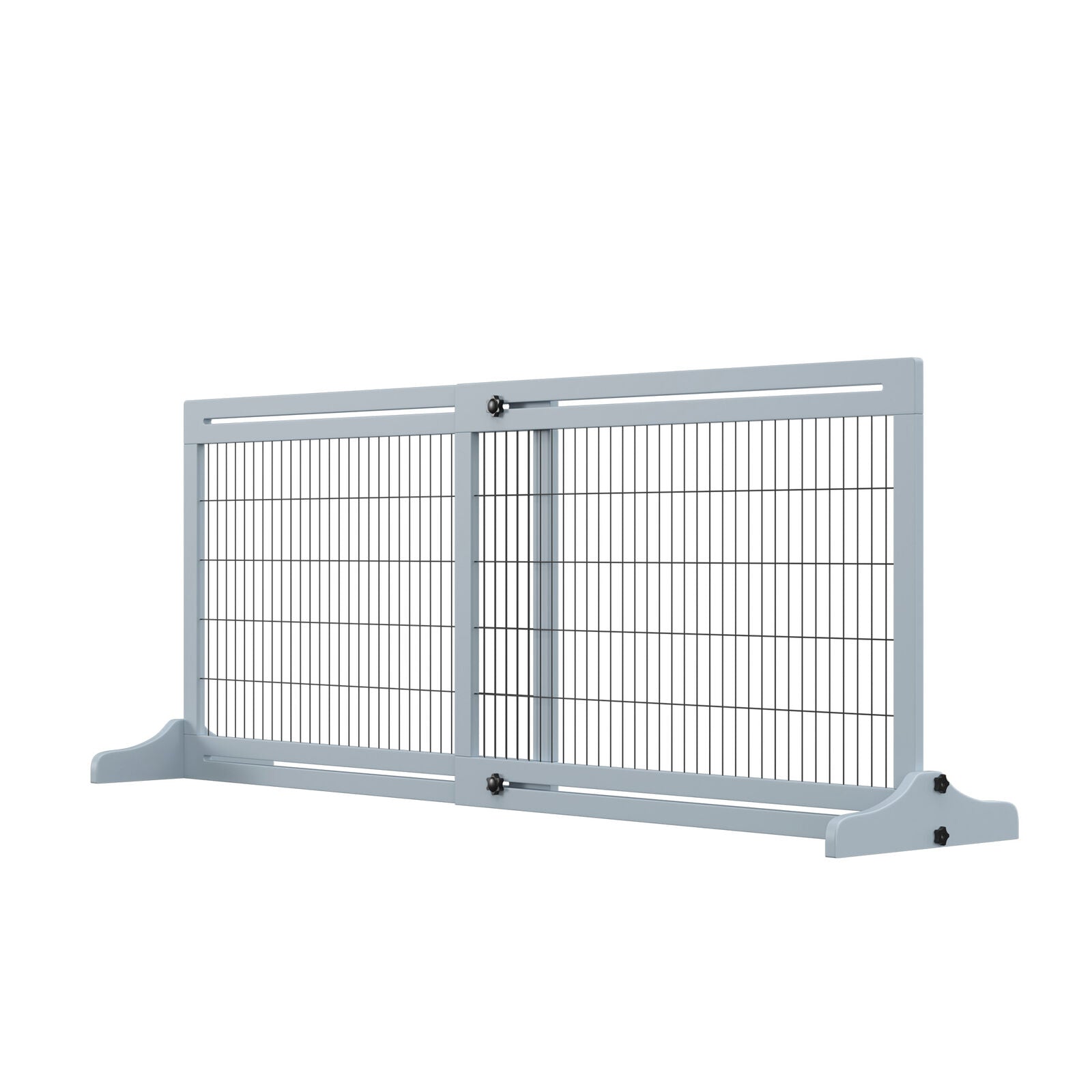 72" Extra Wide Freestanding Pets Gate, No-Mount Adjustable Barrier, Blue-grey 196393066614