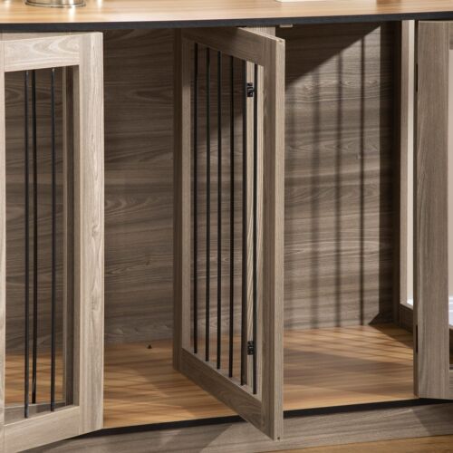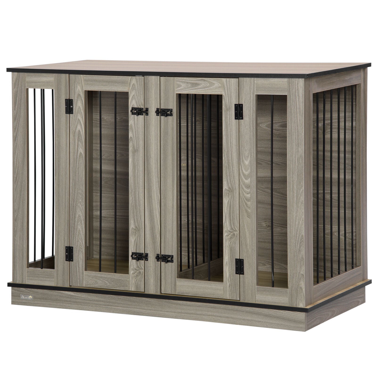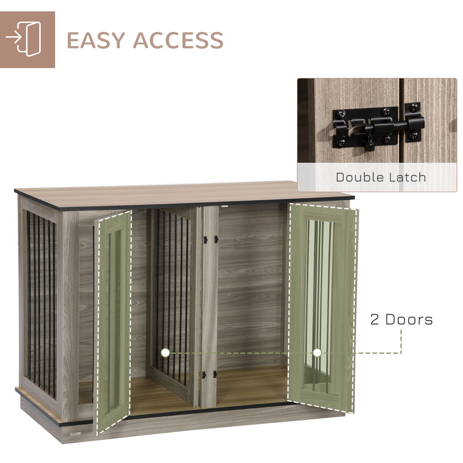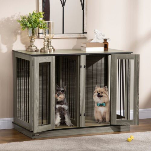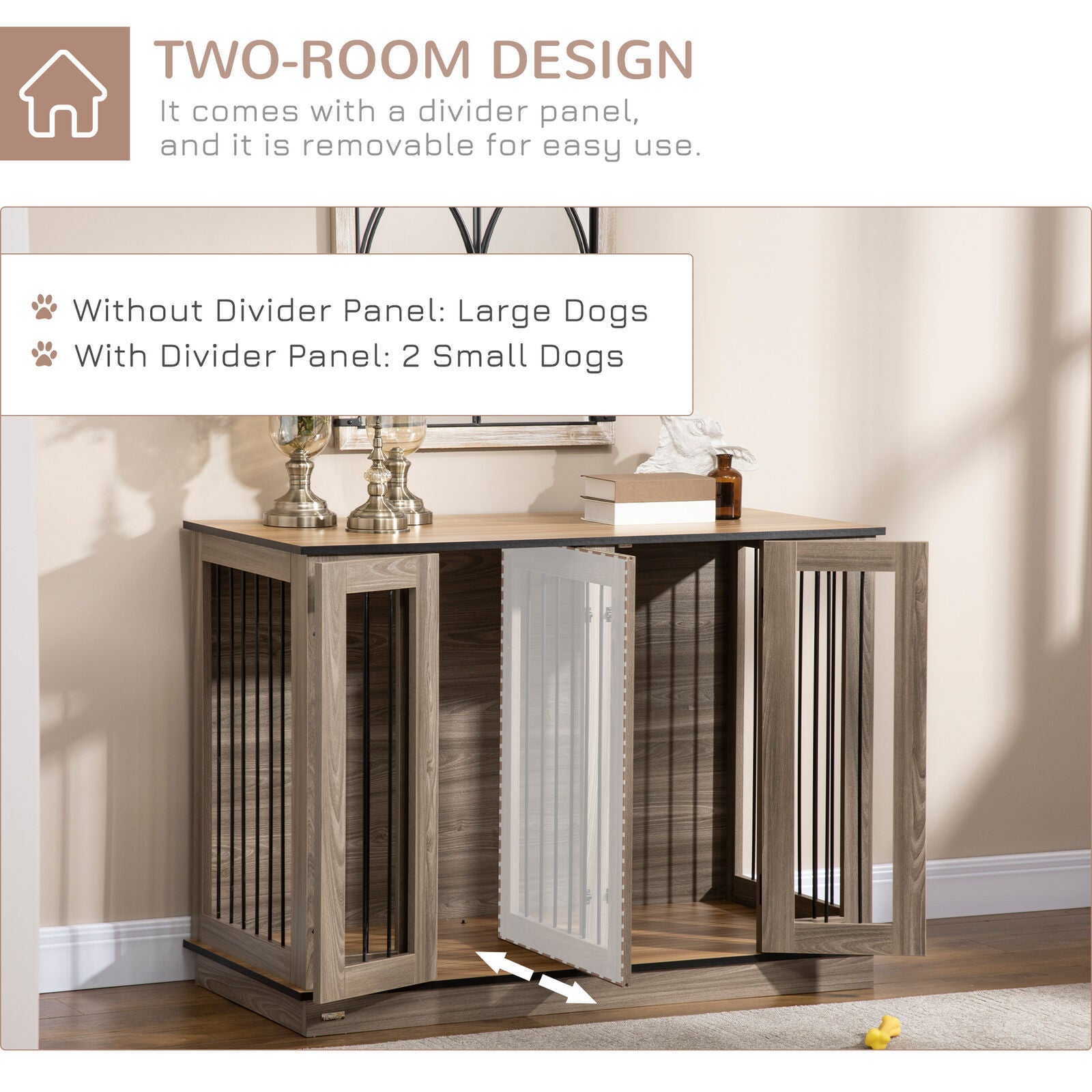 Dog Crate Furniture Side Table W/ Divider Panel 2 Front Doors Double Locks
