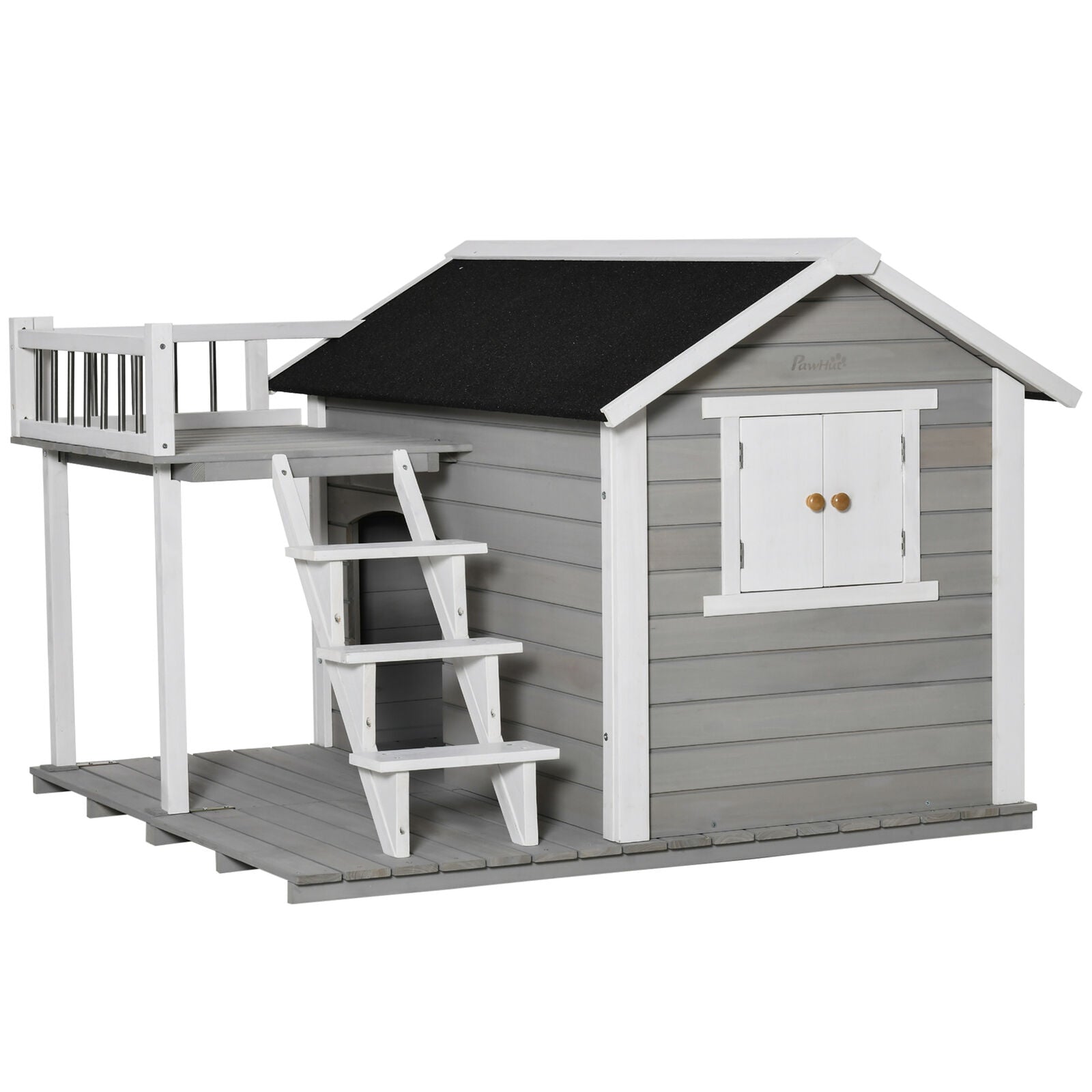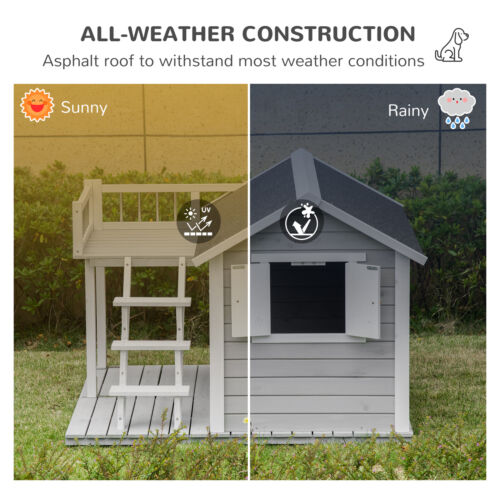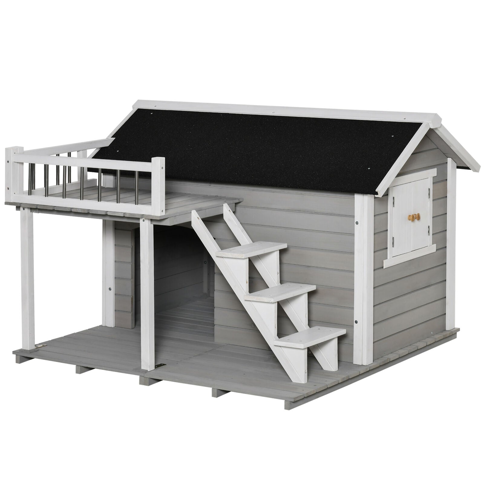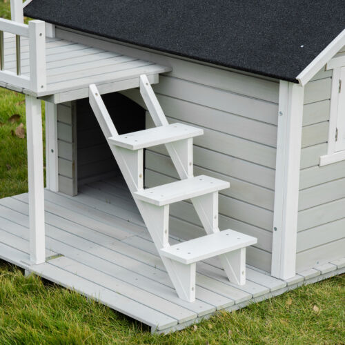 2-Story Wooden Outdoor Dog House Shelter w/ Stairs & Balcony Medium, Large Dogs 196393159132