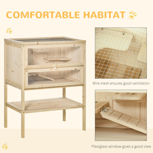 3-Tier Wooden Hamster Habitat Play Cage for Small Animals w/ Platforms, Natural 196393161401