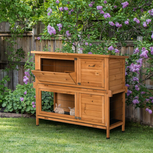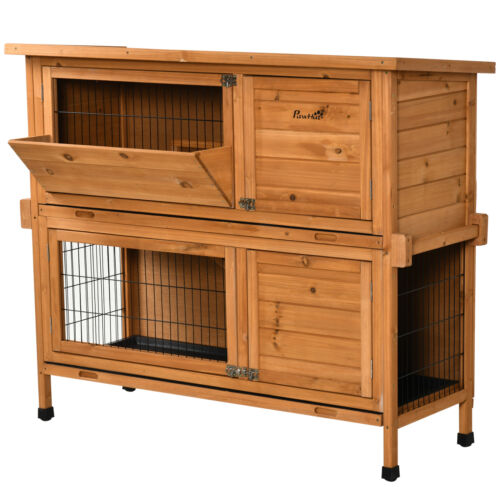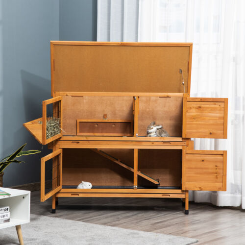 Wooden Rabbit Hutch, Bunny Cage for Small Pet w/Pull Out Tray Openable Roof Ramp 196393165508