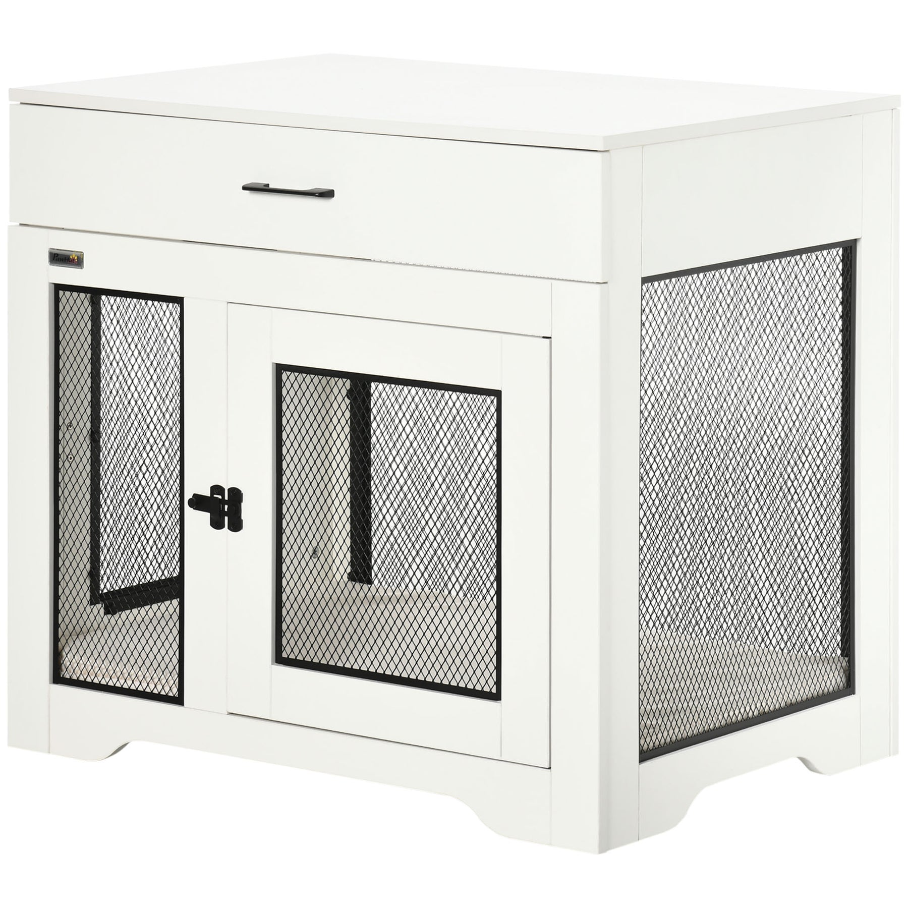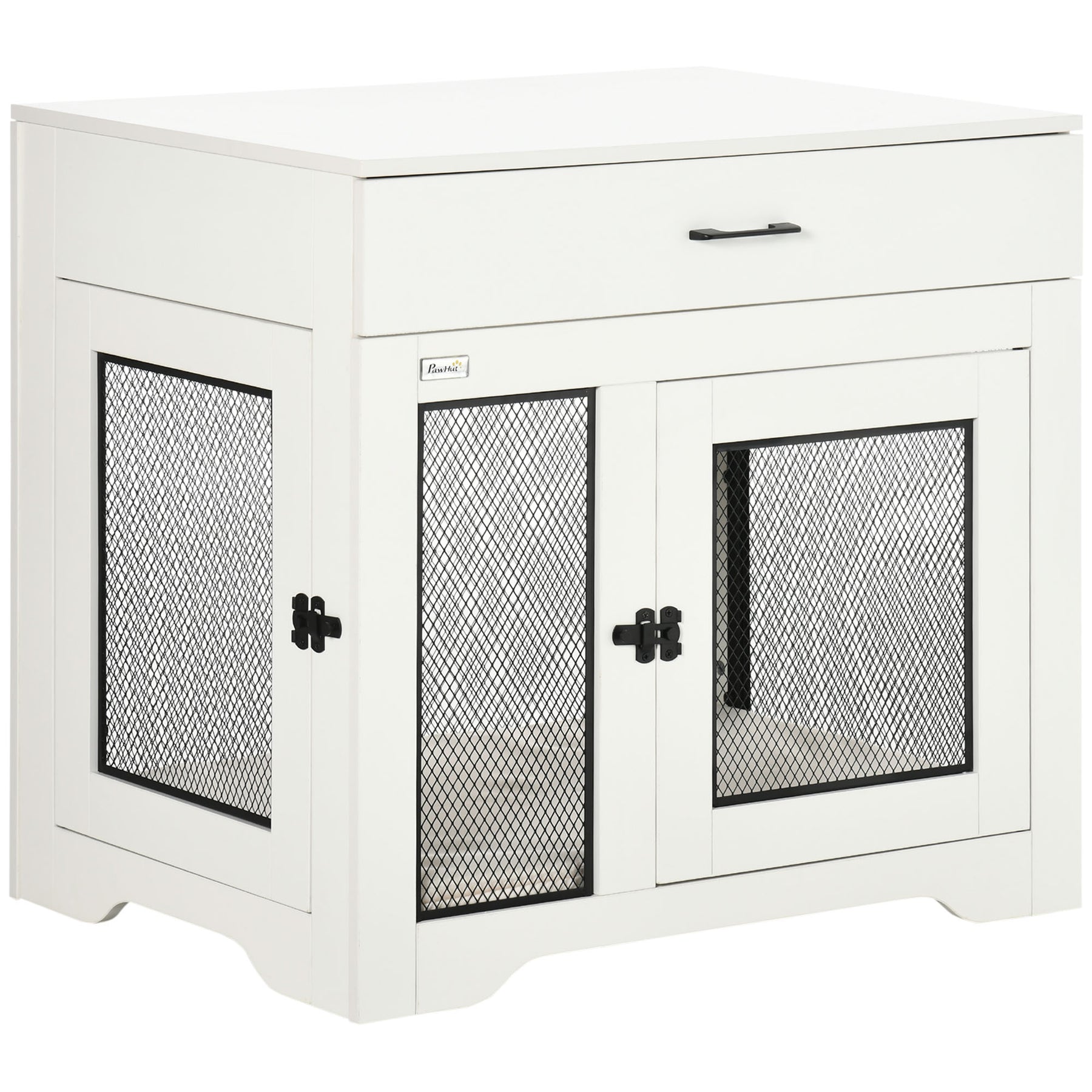 Indoor Use Dog Kennel End Table with Drawer Double Doors for Medium Dogs