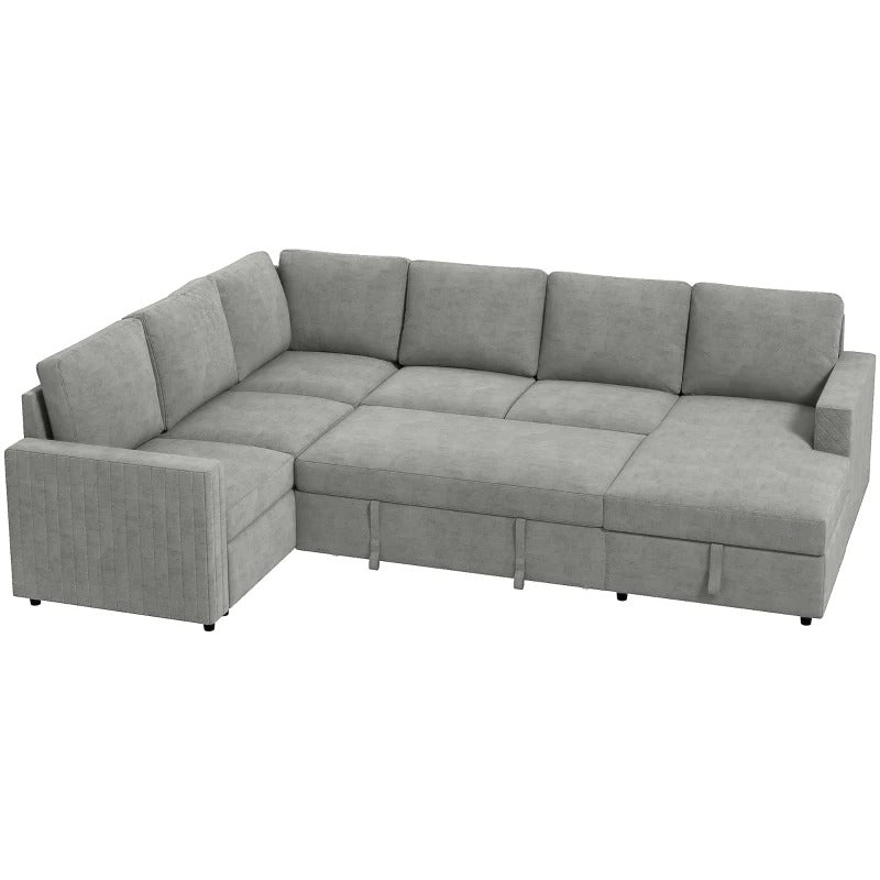 Transform your living space with the HOMCOM pull out sofa bed, designed for modern lifestyles. Struggling with limited space or unexpected guests? Its multi-functional design combine the function of a U-shaped sofa, guest bed, and storage unit. The single-step pull-out system ensures seamless transitions, while hidden compartments keep essentials organized. Suitable for hosting, relaxing, or accommodating guests.