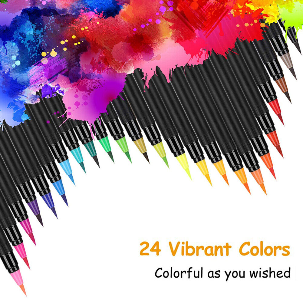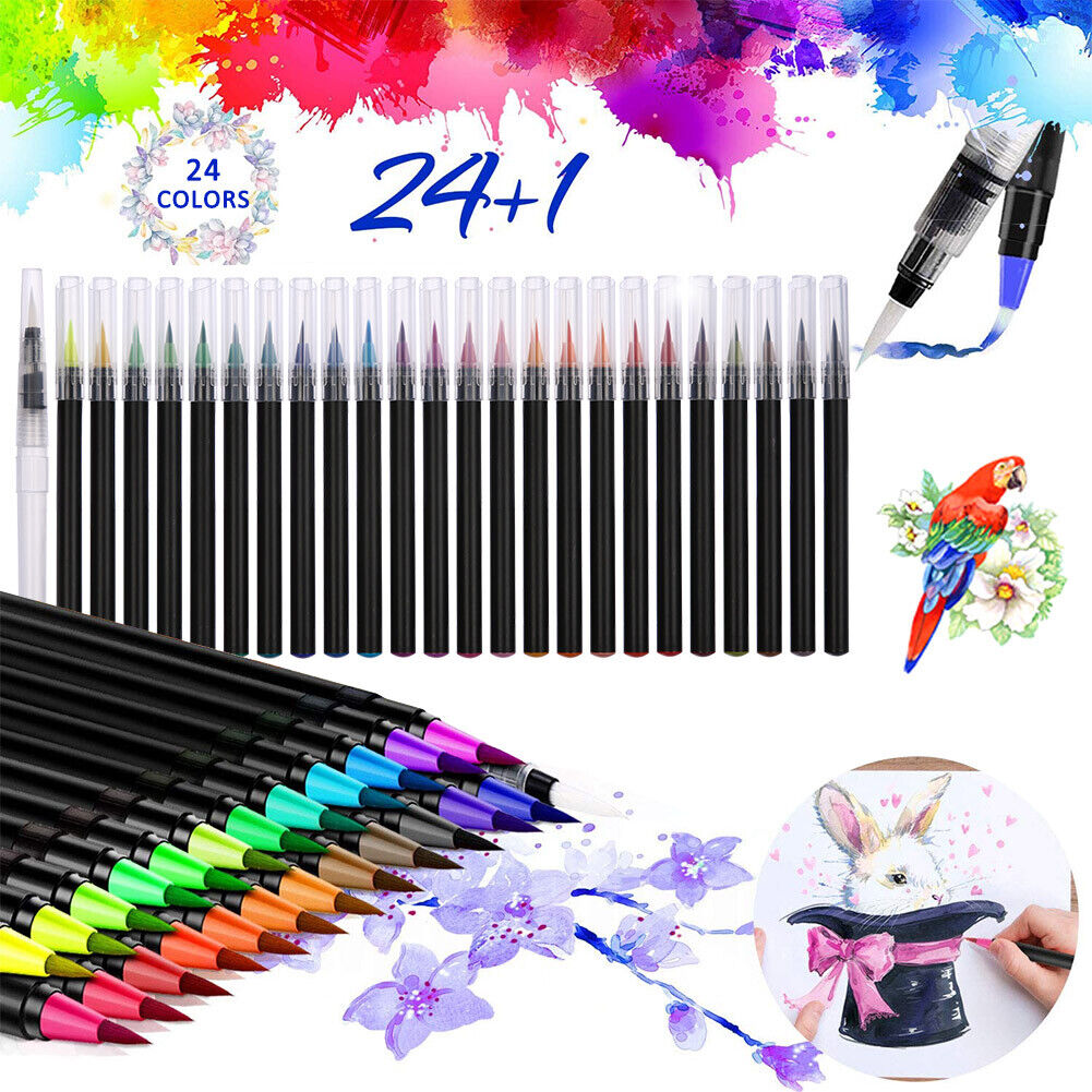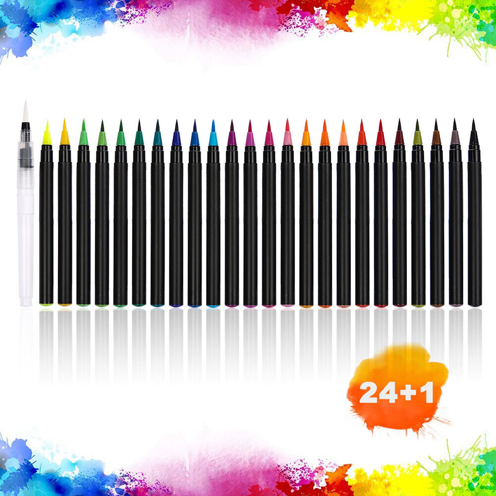 AMAZING VALUE - There are a total of 24 colors of watercolor brushes and 1 water tank brush. Rich water-based pigments, without repeating the colors, with a pleasant grip and an extremely easy to handle feeling.