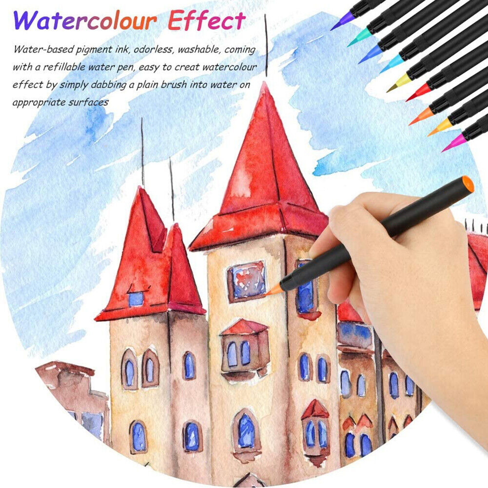 DURABLE NYLON BRUSH TIP - Holds like a marker but paints like a brush. Unlike normal markers, the watercolor pen tip is made from soft and durable paint brush hairs allowing easy transition from fine lines to broad strokes.