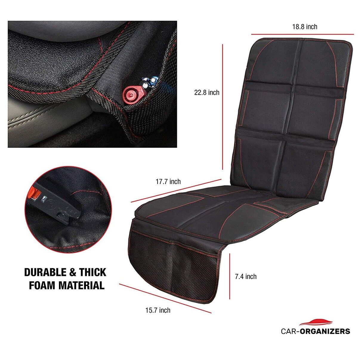 OVERALL PROTECTION- Using The Car Seat Protector for your car’s seat will instantly keep your leather or cloth seats clean from scuff marks, stains, or spills left by your kids feet. Having a child in your car doesn't mean to have dirty or damaged seats.