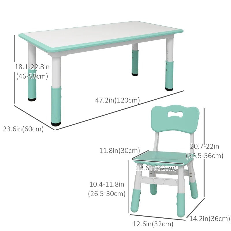 Qaba Kids Table and Chair Set with 4 Chairs, Adjustable Height, Easy to Clean, for 1.5 - 5 Years Old, Green