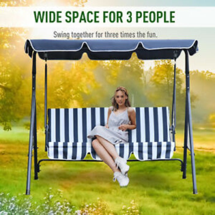 - ● Porch swing with canopy comfortably swings up to 3 people for the perfect outdoor lounging experience