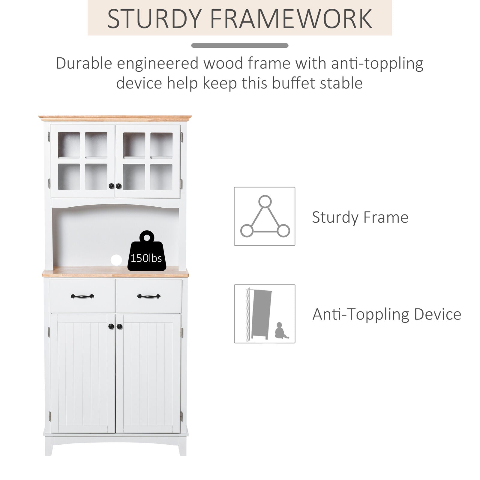 HOMCOM 70" Kitchen Buffet with Hutch, Storage Cabinet with Shelves Countertop