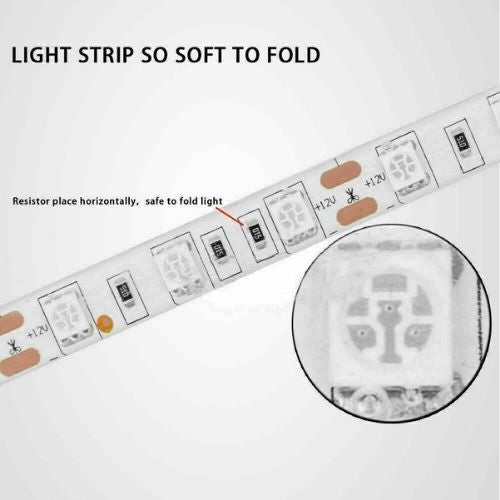 Flexible ribbon for curving around bends; can be cut to desired length every 3 Led lights or used as a whole 5 metre strip