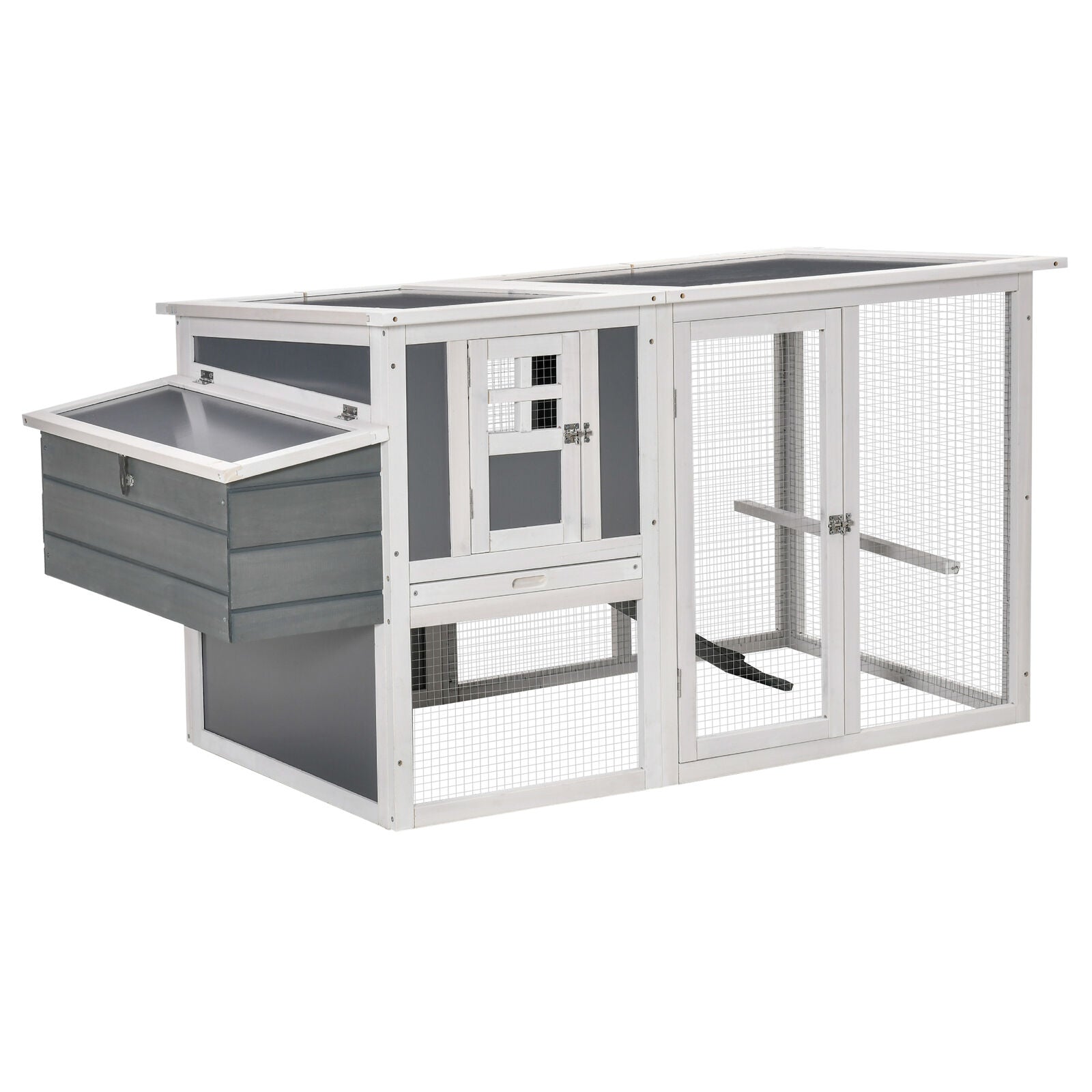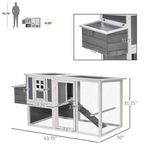 64" Wooden Chicken Coop Hen House with Openable Hollow Sheet Roof Tray