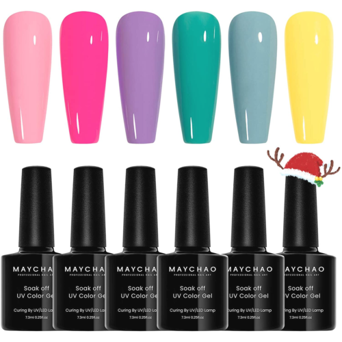 MAYCHAO Gel Nail Polish Set 6 Colors Soak Off UV LED Gel Nail Polish Kit