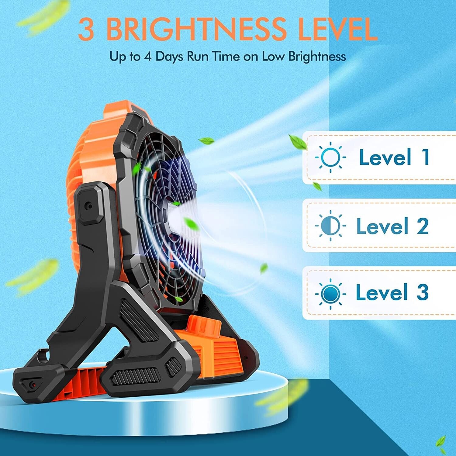 Outdoor Portable Camping Tent Fan with LED Light Rechargeable Cordless Tent Lamp
