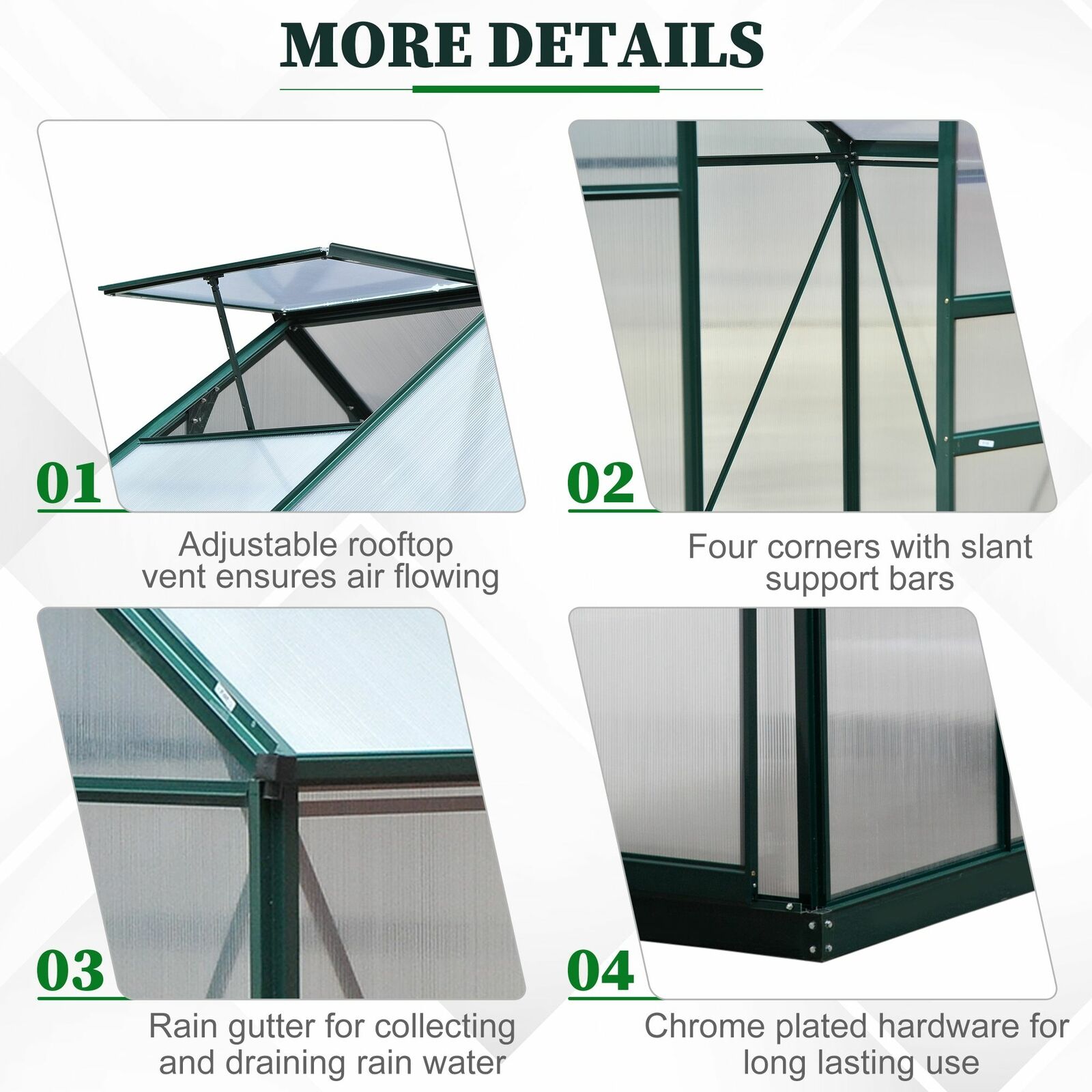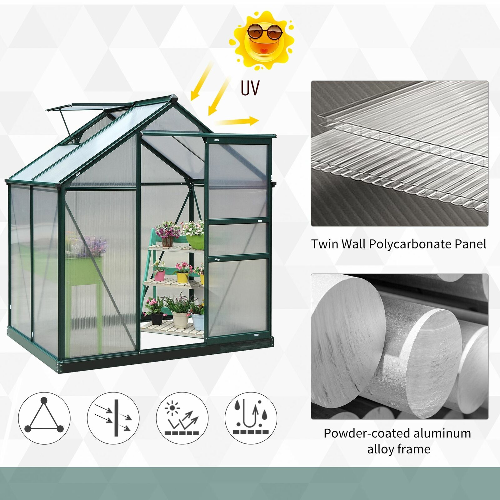 Outsunny 6.2' x 4.3' x 6.6' Walk-In Green House Polycarbonate Greenhouse for