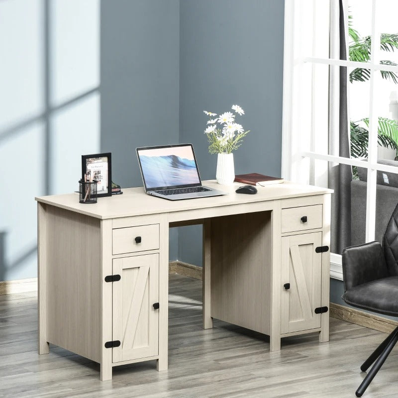 Are you working in your home office and need a new desk with drawers to fit your new lifestyle? Let HOMCOM's study table get the most out of your space and your work day. The student desk provides space to store books, important papers, and photos. The barn door design and sleek metal accents add charm to your office. Take the hassle out of working from home.
