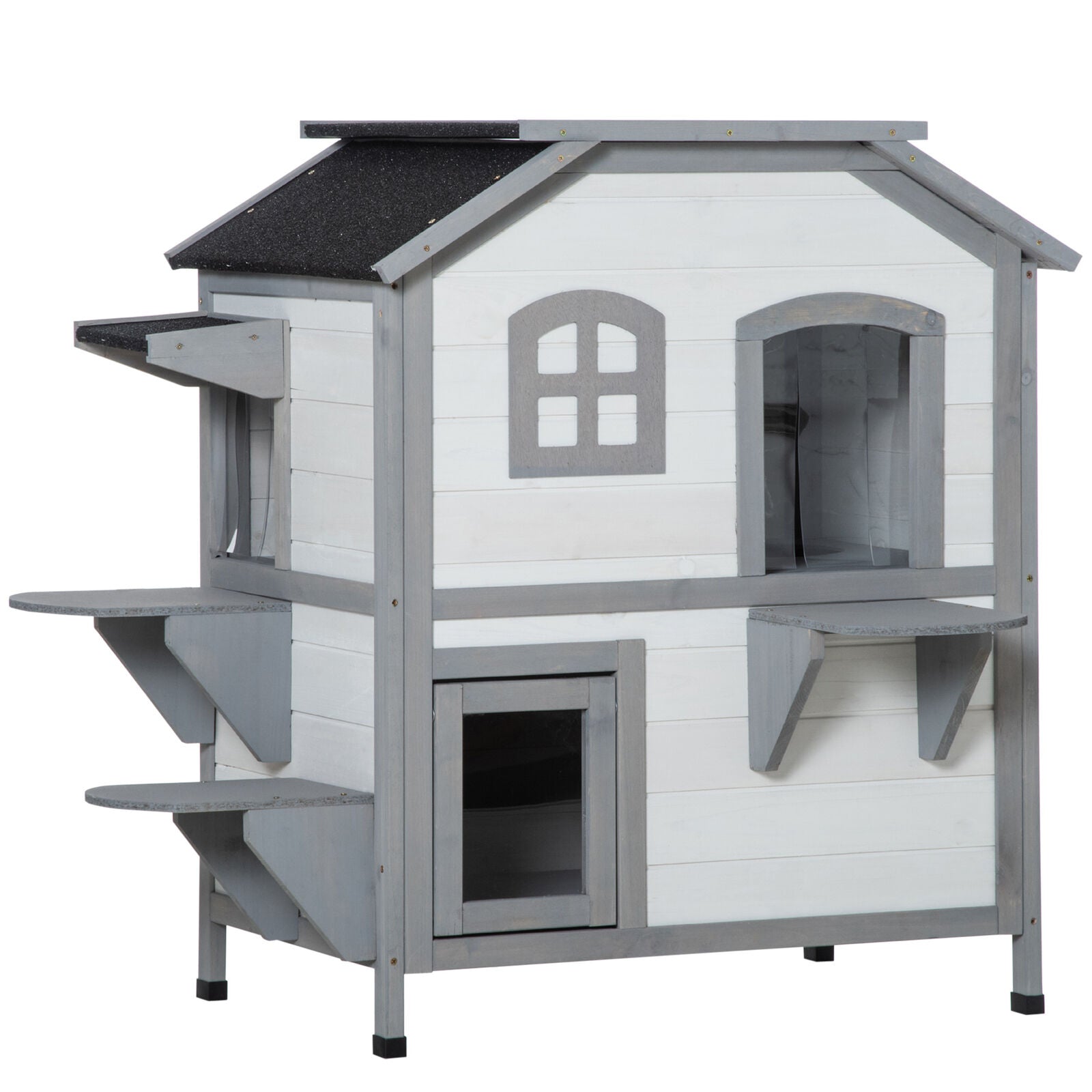 Wooden 2-Story Indoor or Outdoor Cat House W/ Escape Door, Cat Shelter, White 196393161340